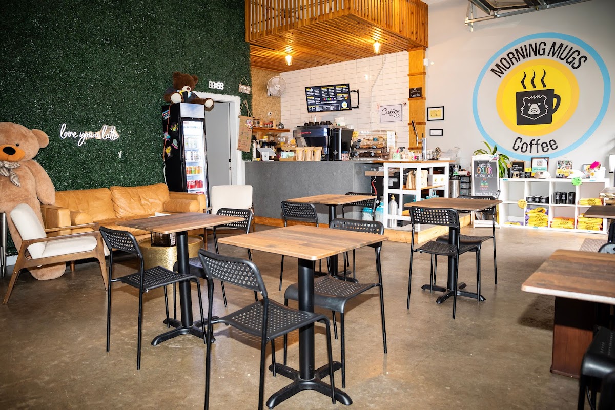 Morning Mugs hebt sich durch sein umfangreiches Menü hervor, das köstliche Speisen zum Frühstück und Mittagessen bietet. Mit Außenbestuhlung und einem angenehmen Geräuschpegel können Remote-Arbeiter leicht einen komfortablen Arbeitsplatz finden und gleichzeitig ihre Mahlzeit genießen.