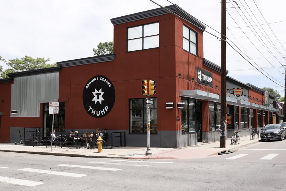 Thump Coffee bietet ein vollständiges Menü mit Frühstücks- und Mittagsoptionen, und zeichnet sich durch seine entspannte, künstlerische Atmosphäre aus. Mit einer WLAN-Geschwindigkeit von 50 Mbps und vielen Steckdosen ist es ein komfortabler Ort für die Arbeit im Freien.