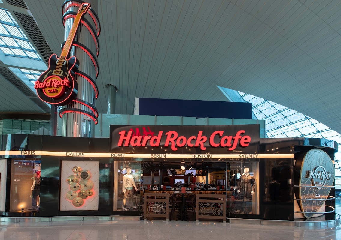 Das Hard Rock Cafe Dubai Airport besticht durch sein rock 'n' roll Thema und eine lebhafte Atmosphäre, während es ein umfangreiches Menü mit amerikanischen Klassikern und vegetarischen Optionen anbietet. Mit stabilem WLAN und ausreichend Sitzmöglichkeiten ist dieses Café ideal für die Arbeit unterwegs.