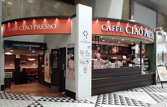 Relaxed Italian-inspired cafe prepping coffee & espresso drinks, plus snacks, inside Nagoya station.