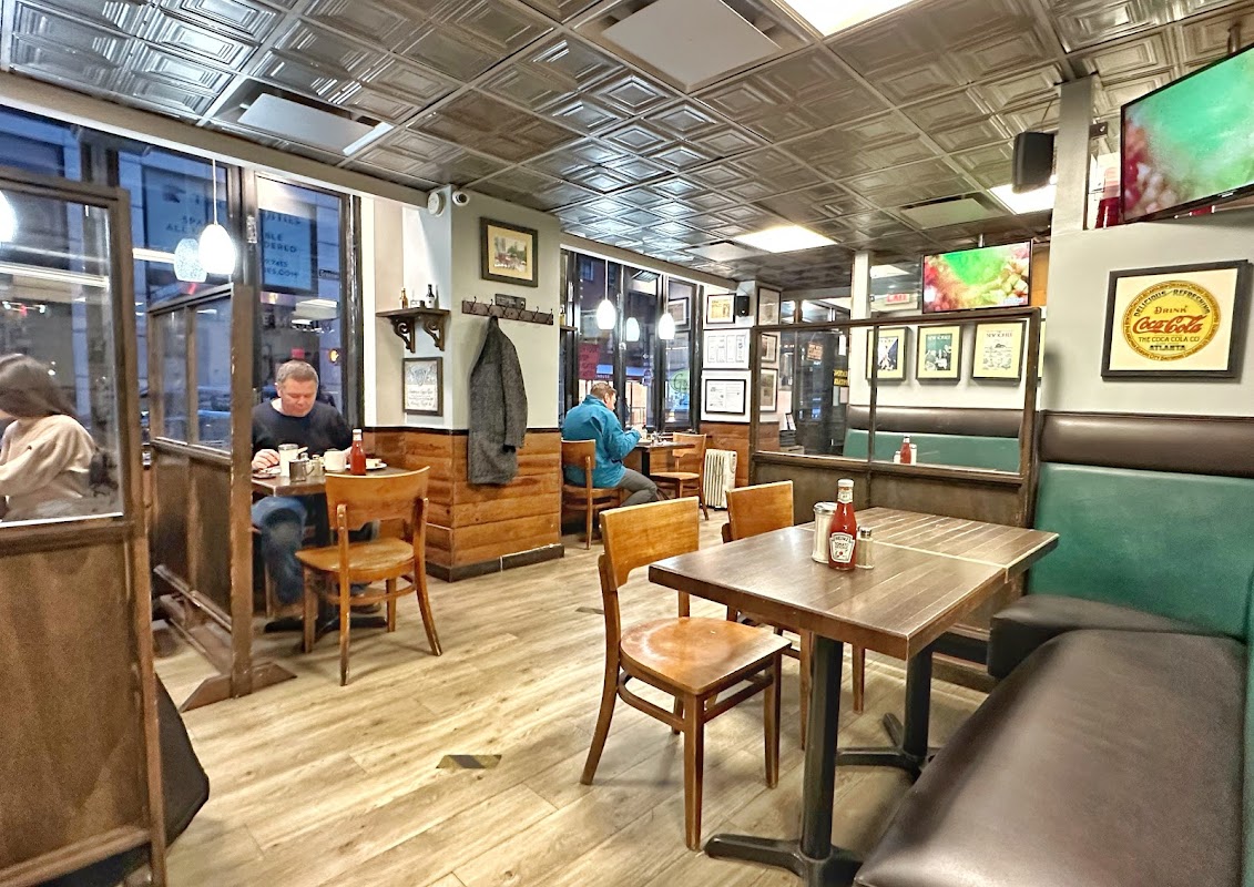 Basic staple since 1950 for breakfast (omelets, pancakes & the like) & other short-order fare.