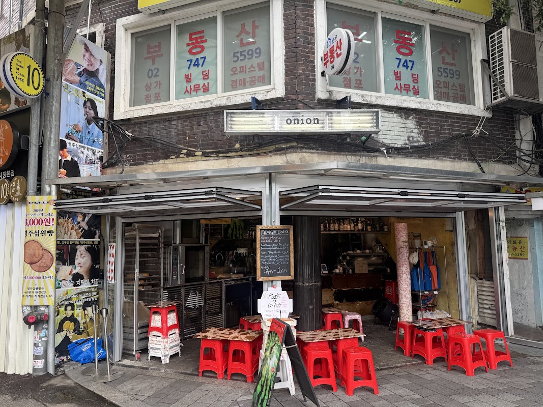 Mit seinem verführerischen Frühstücksangebot und leichten Mahlzeiten ist das Onion Cafe Gwangjang Market Branch ein kulinarisches Highlight. Für Remote-Arbeiter bietet das Café Sitzgelegenheiten im Freien und ausreichend Platz zum Arbeiten, was das Ambiente äußerst einladend macht.