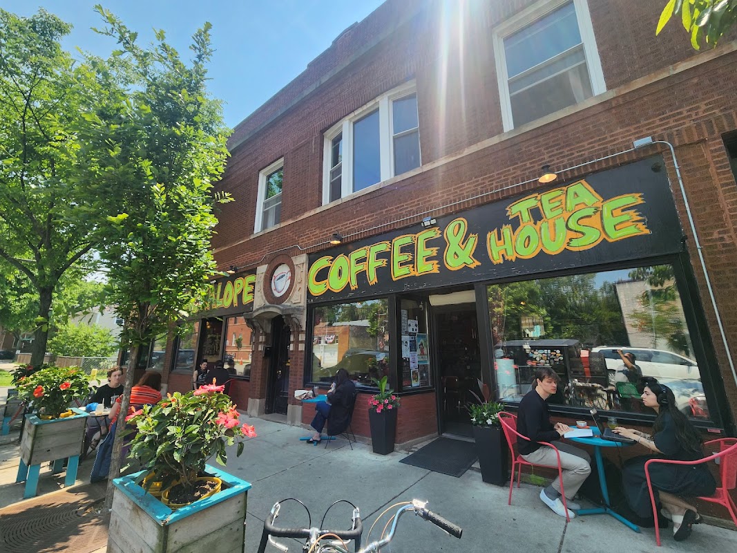 Casual, colorful spot serving coffee drinks, loose-leaf tea, pastries, wraps & panini.