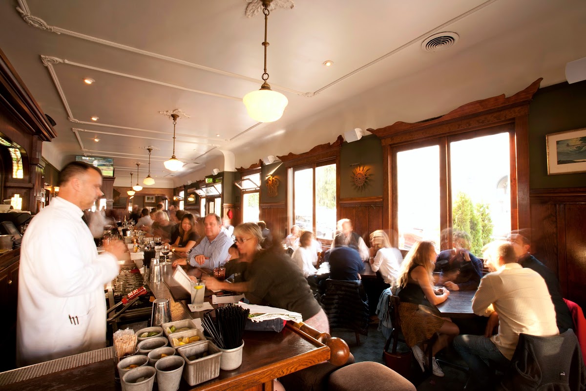 Popular bar perfect for people-watching offering an American bistro menu & classic cocktails.