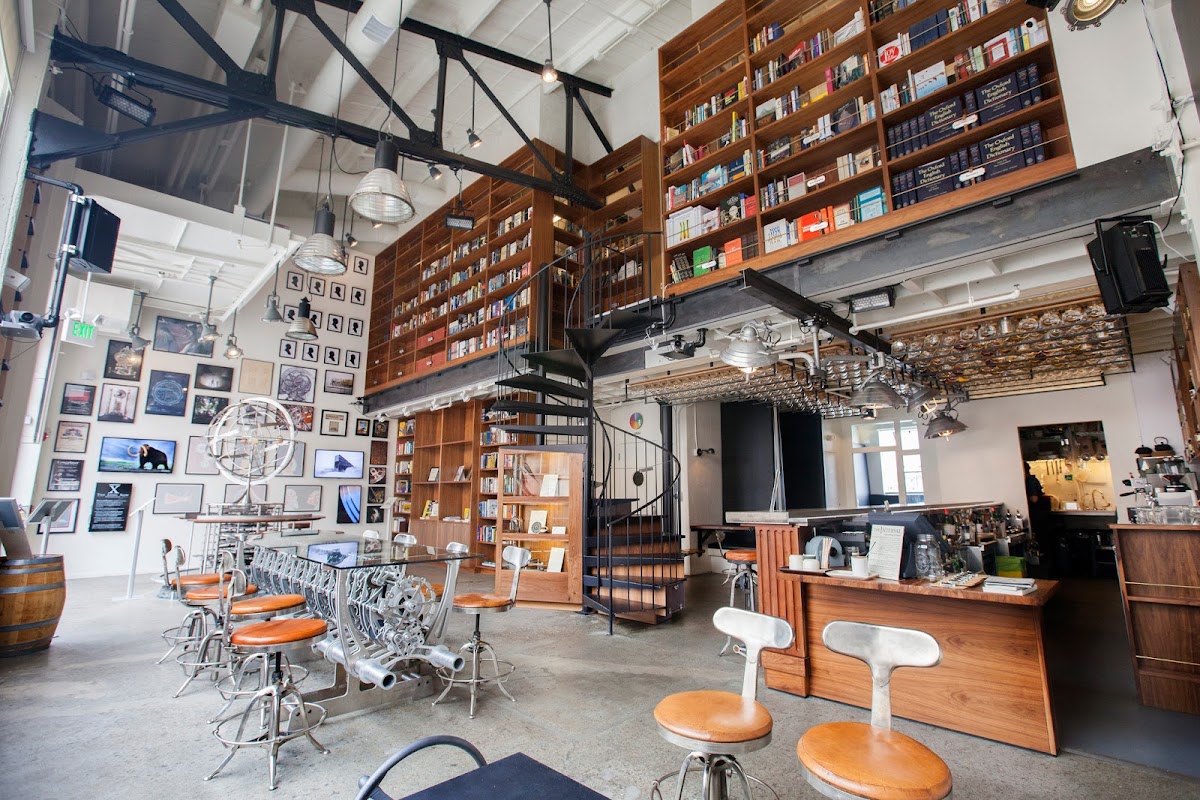 Con impresionantes vistas y una decoración inspirada en bibliotecas, The Interval at Long Now combina de manera única una cafetería y un espacio para eventos. Cuenta con asientos al aire libre para disfrutar del aire fresco y un ambiente cómodo para trabajar, lo que lo convierte en un lugar conveniente para el trabajo remoto.
