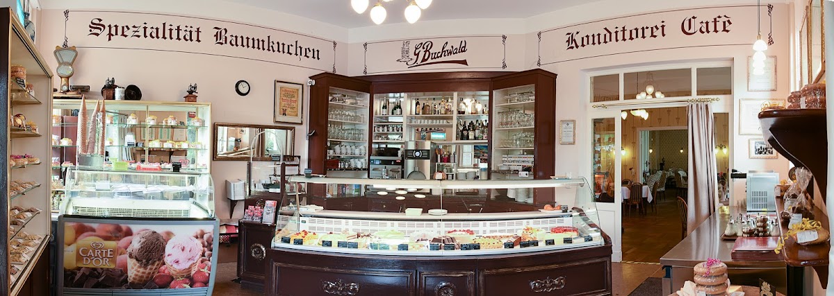 Coffee, traditional Baumkuchen pastries & desserts at a homey cafe with a garden terrace.