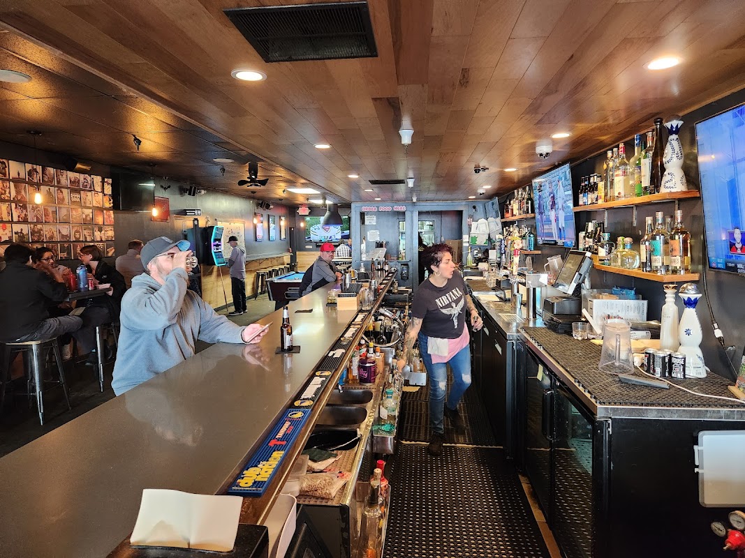 Industrial-style bar serving generous burgers, sandwiches & chicken wings, plus veggie options.